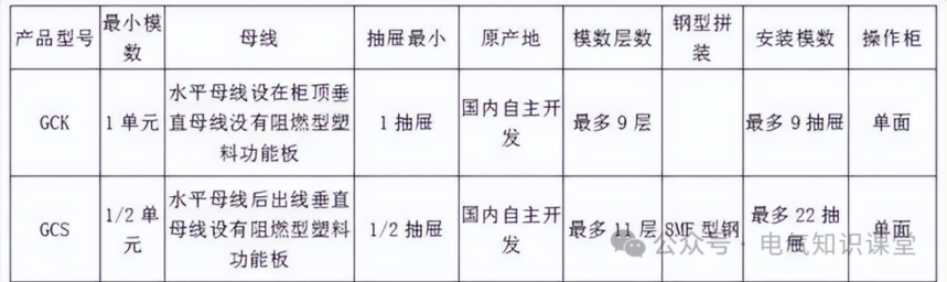 ▷ 各种型号开关柜的区别: 1. GCS、GCK、MNS、GGD开关柜区别 GGD是固定柜,GCK、GCS、MNS是抽屉柜。GCK柜和GCS、MNS柜抽屉推进机构不同;GCS柜只能做单面操作柜,柜深800mm,MNS柜可以做双面操作柜,柜深1000mm。 GCK是国内很老的柜型,当时使用的型材强度较差,操作机构也不太灵活。现在生产的大多吸收了GCS柜的优点。 GCK 与GCS、MNS明显不同在水平母线是传统的设在柜顶上,垂直母线没有阻燃型塑料功能板,电缆出线可以是后出,也可以做成右侧电缆室出线,但抽屉推进机构和GCS、MNS不同,比较简单 GCS是90年代中期由森源公司参照A MNS柜可以双面操作,柜深1000mm ,最多单柜可装36个回路(有1/4抽屉),而GCS只能做单面操作,柜深800mm ,最多为22只。 MNS柜体所使用的材料为敷铝锌板,全组装结构,不需后处理(镀锌)。 MNS和GCS的水平母线都是后出线与前左的抽屉单元、前右的电览出线室有隔板隔开,他们的垂直母线是组装在阻燃型塑料功能板中更可靠。 在3C强制性认证试验样柜的要求:GCK最小抽屉单元一模数,GCS最小抽屉单元1/2模数,MNS(进口A